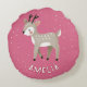 Cute Pink Reindeer Kid`s Name Christmas Round Cushion