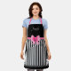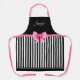 Cute Pink Ribbon Black White Stripes Pattern Apron.