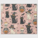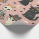 Cute Pink Skeleton Princess & Halloween Cats Wrapping Paper