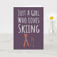 **Keywords:** Cute Pink Ski Cards, For Baby Girls Kids, Just A Girl Who Loves Skiing, ski gift, themed, unique, related, lover, sports, Christmas, Xmas, Halloween, Thanksgiving, ornament, presents, stocking stuffer, White Elephant Gifts, novelty items, birthday, for her, girls, girly, daughter, granddaughter, kids, female, teen girls, teenagers, baby girl, back to school, skiing, winter.