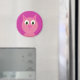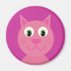 Round pink magnet with a cute cartoon illustration of a smiling pink cat. Please visit my Molly Sky store for Spanish scenery & animal photography & loads of fun, cute & retro illustrations. A wide range of products available: mugs; travel mugs; key chains; sneakers; stamps; T-shirts; ties; skateboards; magnets; greeting cards; postcards; mouse pads; aprons; ties; dog clothing; bags; buttons/badges; stickers; caps; wedding related products; children & baby clothes; hanging ornaments; pins/brooches; bookmarks (in bulk); posters, & binders.