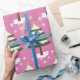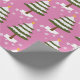 Cute Pink & Snowy Trees Woodland Christmas Holiday Wrapping Paper
