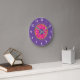 Cute pink sprinkle donut custom round kitchen wall clock. Also nice for children's room or nursery. Personalize with name or monogram letters. Custom background color i.e. purple. Trendy room decor ideas. Girly doughnut design with colored sprinkles. Also nice for office or bakery.