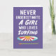**Title:** Cute Pink Surfer Cards For Kids Girls Surfing Surf - Never Underestimate A Girl.