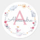 Cute pink swan & sun floral wreath with monogram classic round sticker