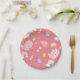 Cute pink sweet dinosaur rainbow pastel Pattern Paper Plate