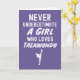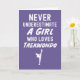 * Features the full quote: "Never Underestimate A Girl Who Loves Taekwondo."
