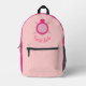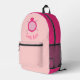 This awesome backpack features a cute pink turtle with big black eyes and a pretty two-tone pink shell. She has little pink feet and a cute tail. There is text underneath the turtle that says turtle babe. This would make a fun gift for a female of any age.