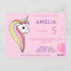 Cute Pink Unicorn Kids Birthday Party Invitation Postcard