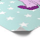 Cute Pink Unicorn with Stars Girl Nursery Poster. The background is turquoise with white stars. Great for the nursery room, especially for a little girl.