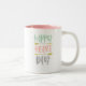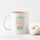 A Galentines mug with the phrase, "Happy Heart Day" in a loose brush script font. A pretty mug to fill with chocolate for a perfect friend gift for Valentine's Day.
