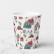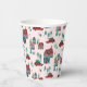 Celebrate the magical and festive holiday season with our custom holiday party paper cup. Our vintage holiday design features a cute girly pink retro car carrying a Christmas tree. Cute Nordic pink Alpine ski lodge cosy chalet village pattern all-over print. All artwork is hand-drawn original by Caroline Bonne Müller