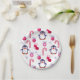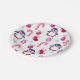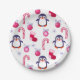 Cute Pink & White Christmas Pattern with Penguins Paper Plate