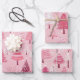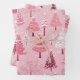 Cute Pink White Retro Christmas Trees Wrapping Paper Sheet