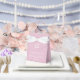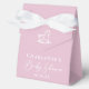 This cute pink baby shower favour box features an adorable rocking horse toy above your modern minimalist white typography. Beautiful modern shower favours for a mum expecting a baby girl.