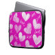 Cute Pink White Scribbled Hearts with Love Script Laptop Sleeve
