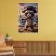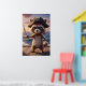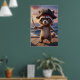 An adorable raccoon dressed as a fearless pirate, sword in hand, sailing the open sea. Perfect for pirate fans, cute animal art lovers, and whimsical adventure decor.