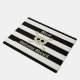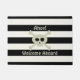 Cute Pirate Skull Stripe Welcome Aboard Door Mat. A cute pirate skull and crossbones "Jolly Roger" on a black and white striped background. The text is customisable if you'd like to change my "Ahoy!! Welcome Aboard". Suitable for all pirate doorways and ships