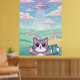Cute Pixel Art Cat with UFO in Pastel Sky Kawaii Poster