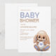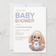 Cute plush bunny baby shower invitation in pastel colours.