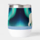 A cute polar bear (Ursus maritimus), done in a simple primitive, or naive style, walks on the polar ice, the Aurora Borealis (Northern Lights) glow brightly in the background. Customise by adding your own text.