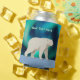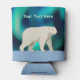 A cute polar bear (Ursus maritimus), done in a simple primitive, or naive style, walks on the polar ice, the Aurora Borealis (Northern Lights) glow brightly in the background. Customise by adding your own text.