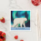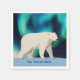 A cute polar bear (Ursus maritimus), done in a simple primitive, or naive style, walks on the polar ice, the Aurora Borealis (Northern Lights) glow brightly in the background. Customise by adding your own text.