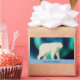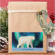 A cute polar bear (Ursus maritimus), done in a simple primitive, or naive style, walks on the polar ice, the Aurora Borealis (Northern Lights) glow brightly in the background. Customise by adding your own text.