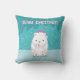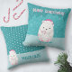 Cute Polar Bear Christmas Cartoon Kids Name Blue Cushion
