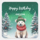 Cute Polar Bear Christmas tree birthday girl party Square Sticker
