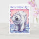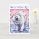 Cute Polar Bear Art Mother's Day Card created by Imagine That! Design features our original whimsical art by Traci Van Wagoner of a fun white polar bear standing in a snowy landscape with a sunrise pink sky and a playful wavy purple border. Inside is a customisable message that reads, Here's a BEAR HUG for your special day! with the polar bear in the bottom right corner. On the back of the card is the humourous polar bear's butt. This cute white bear card is a great way for all sea bear lovers, polar bear lovers, and wild animal lovers to wish their mum a happy Mother's Day. Bring a smile to her face and don't forget to give her a bear hug to show her how much you love her.