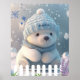Cute Polar Bear in Snow Blue Hat Scarf Custom Art Poster