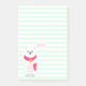 NewParkLane - Post-it Notes, featuring a cute polar bear with a hot pink scarf and an ice-cream, and a text balloon for your name or other personal text, against a fun pattern of mint green and white stripes.