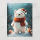 Cute Polar Bear Santa Hat and Scarf Art Postcard