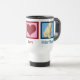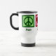 Peace Love Polar Bears mug. A green peace sign, red heart, and a pretty polar bear on a blue square. Great gift for someone who loves beautiful animals.