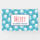 A banner which says Merry Christmas - with a cute Christmas pattern featuring polar bears standing on floating ice wearing red santa hats. Little igloos, snowflakes and fish surround these adorable polar bears chilling on the water. Light blue background. Cute and whimsical holiday design.