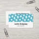 A business card with a cute Christmas pattern featuring polar bears standing on floating ice wearing red santa hats. Little igloos, snowflakes and fish surround these adorable polar bears chilling on the water. Light blue background. Cute and whimsical holiday design.