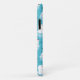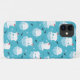 Phone case with a cute Christmas pattern featuring polar bears standing on floating ice wearing red santa hats. Little igloos, snowflakes and fish surround these adorable polar bears chilling on the water. Light blue background. Cute and whimsical holiday design.