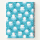 Spiral notebook with a cute Christmas pattern featuring polar bears standing on floating ice wearing red santa hats. Little igloos, snowflakes and fish surround these adorable polar bears chilling on the water. Light blue background. Cute and whimsical holiday design.