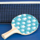 Ping pong paddle with a cute Christmas pattern featuring polar bears standing on floating ice wearing red santa hats. Little igloos, snowflakes and fish surround these adorable polar bears chilling on the water. Light blue background. Cute and whimsical holiday design.