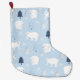 Cuddly polar bears surrounded by Christmas trees and snowflakes against an ice blue background