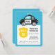 Looking for birthday party ideas for boys? How about a police themed party for a birthday boy who love police or car themes and toys! You can also make use of the party to teach kids on how to be a law abiding citizen. This cute kids birthday party invite features a black and white police car with a sounding siren and a yellow police badge for personalisation of details like the birthday child's age. Blue background can be changed in customisation mode.