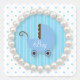 Cute Polka Dot and pearls boy Baby shower Sticker. pretty sticker for the contemporary mum to be. A vintage stroller in blue with the word 'Boy' in a swirly font, A pearl circle border and lots of polka dots! Matching Items available.