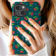 This adorable design features bright red cherries and white polka dots against a sleek teal background, perfect for those who love a playful and bold style. The vivid cherries add a pop of colour and charm, while the black backdrop creates a striking contrast. A personalised monogram adds a unique and stylish touch, making this design both fun and functional. Ideal for adding a cheerful and whimsical vibe to your accessories collection.