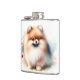 Cute Pomeranian watercolor illustration Hip Flask