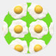 Cute and quirky brightly colored design of fried eggs in Pop Art style in a pattern on a lime green background. Suitable food motif for an Easter present or just for something a bit off the wall. Featuring the bright colors of canary yellow, lime / grass green and white.