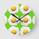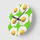 Cute and quirky brightly coloured design of fried eggs in Pop Art style in a pattern on a lime green background. Suitable food motif for an Easter present or just for something a bit off the wall. Featuring the bright colours of canary yellow, lime / grass green and white.