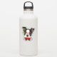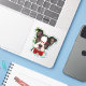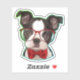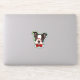 A cute Boston Terrier pup wears red glasses and a red bow tie on this contour sticker. A gradient green and blue border gives him a retro pop art look.