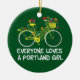 A cute Portland, Oregon gift featuring a vintage bicycle decorated with flowers and Everyone Loves a Portland Girl written in green. This pretty souvenir makes a beautiful gift for a hipster in the greatest city!