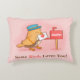 A throw pillow with a sweet and cute cartoon illustration of a little orange bird with postman hat and sling bag making its way to deliver a love letter to the recipient's mailbox. The funny pun caption reads "Some Birdy Loves You!" Confess your love this Valentines day or any other romantic occasions! Put a smile on your sweetheart's face by personalising with his or her name on the red mailbox!